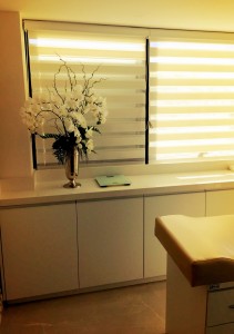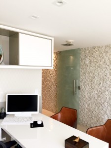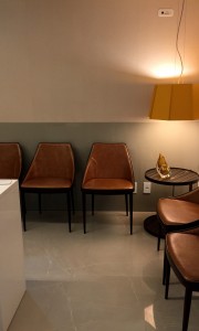 Apesar do tamanho reduzido da clínica, com um bom estudo de layout, fluxos de atendimento e a seleção da paleta de cores neutras e claras, conseguimos dispor todas as atividades nos 32m² de área útil, sem perder a funcionalidade, a amplitude visual e a sofisticação. Para obtermos esse efeito, foram fundamentais a escolha das cores e dos materiais de acabamento, que trouxeram atemporalidade ao projeto.